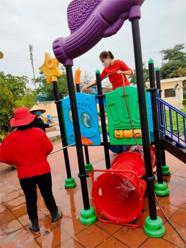 Với quyết tâm không để dịch bệnh Covid- 19 nói riêng và các dịch bệnh dễ lây lan trong mùa mưa ẩm thấp nói chung…có cơ hội xâm nhập trong nhà trường. Trường mầm non Cổ Bi sẽ luôn nâng cao công tác vệ sinh môi trường để mang lại cảnh quan và môi trường an toàn cho trẻ khi đến lớp.
