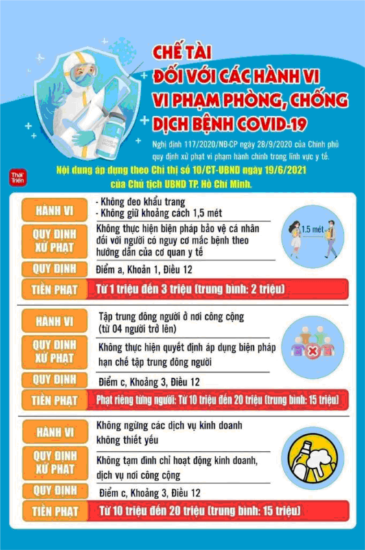 7. Hành vi không thực hiện quyết định áp dụng biện pháp hạn chế tập trung đông người hoặc tạm đình chỉ hoạt động kinh doanh, dịch vụ tại nơi công cộngbị phạt tiền từ 10.000.000 đồng đến 20.000.000 đồng(theo quy định tại điểm c khoản 3 Điều 12).