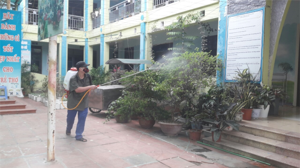 Sau đây là 1 số hình ảnh phun thuốc diệt muỗi diễn ra tại nhà trường: